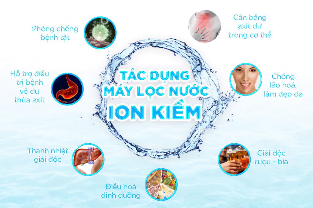 Tác dụng của nước ion kiềm là gì? Dựa vào tiêu chuẩn của Bộ Y Tế, với nước điện giải ion kiềm có độ pH từ 8.5 – 9.5 được xem là thức uống có lợi cho sức khỏe người tiêu dùng, gồm các lợi ích nổi bật như: